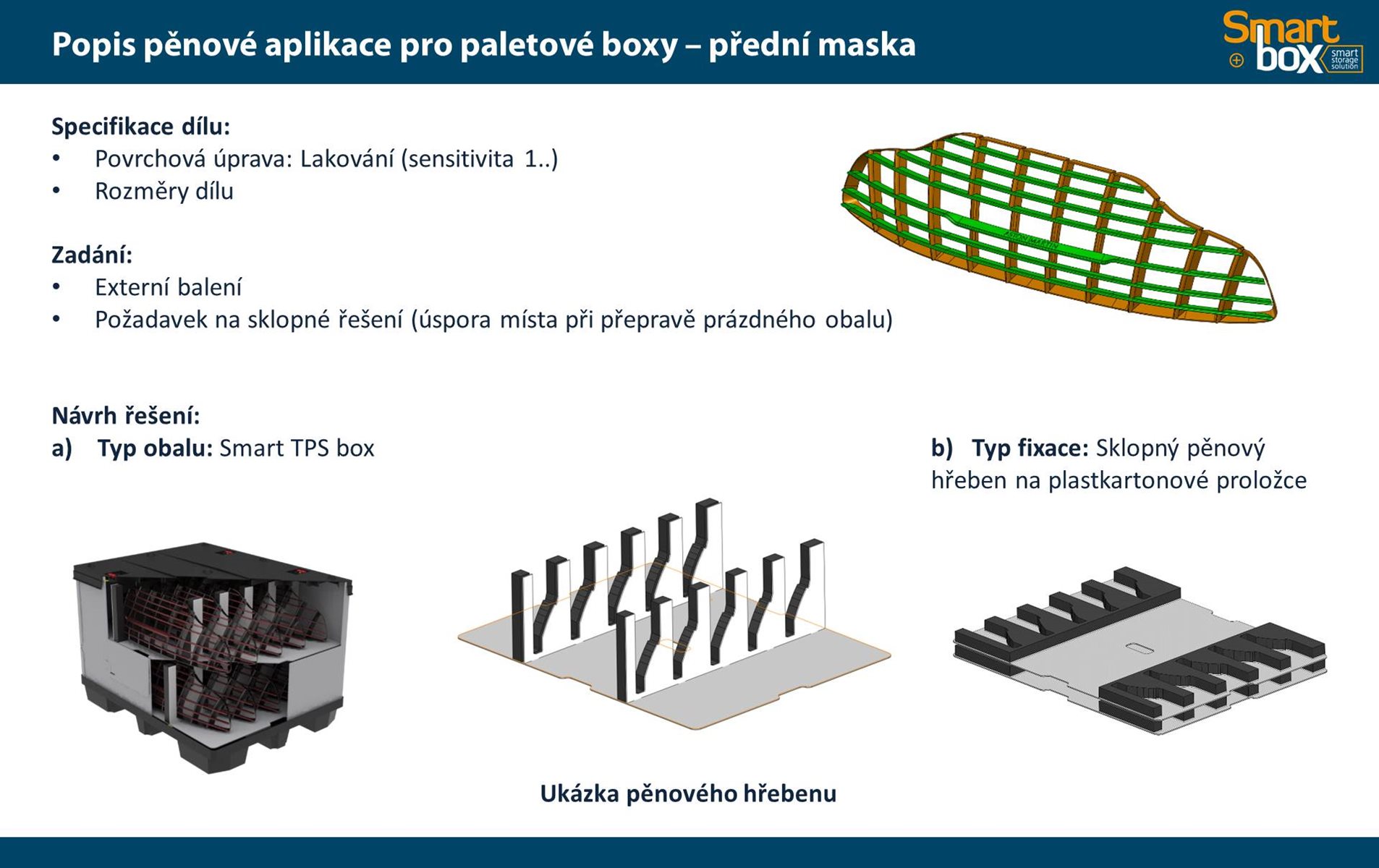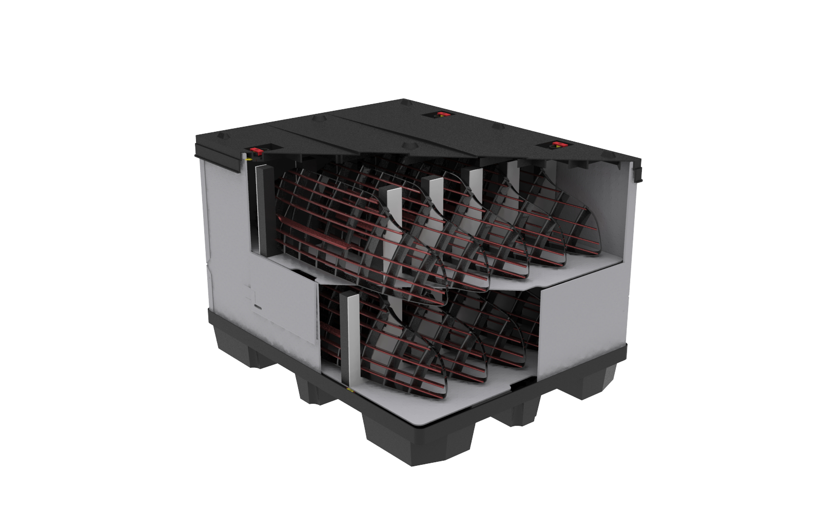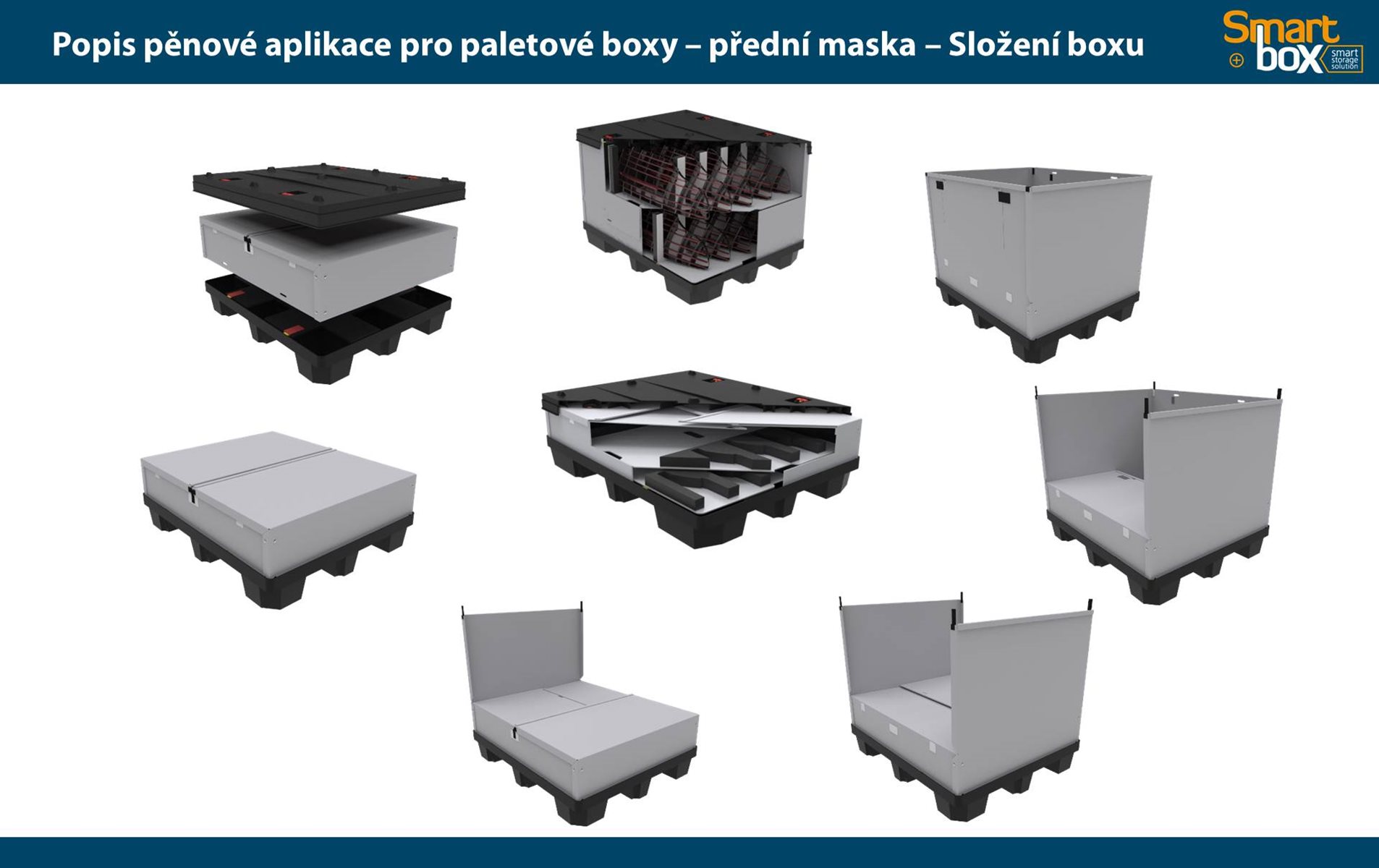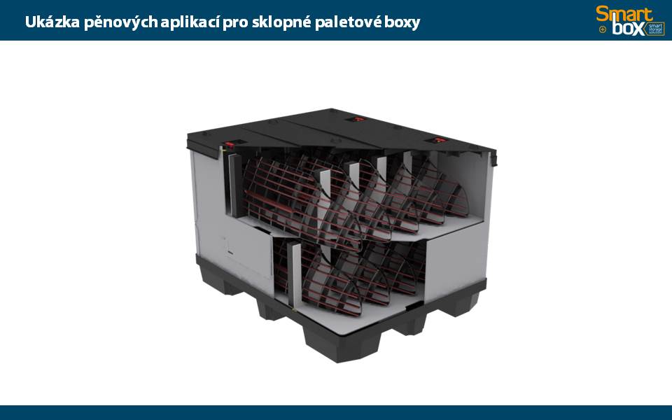 Tento typ kontejneru se vyznačuje velkým užitkovým objemem, který zaručuje maximální využití vnitřního objemu a zároveň minimální velikost boxu ve složeném stavu. Skládací paletový kontejner je ideální na manipulaci a skladování, zejména pak pro systém vratného balení. Možnost použití 2 a více pater textilních inzertů v jednom boxu.