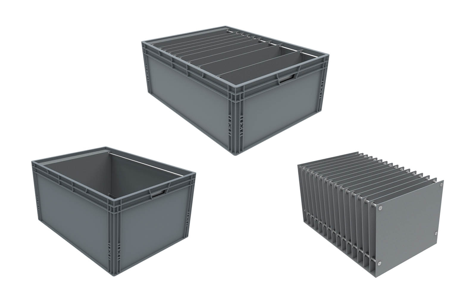 Euro box s posuvnými příčkami má univerzální užití ve všech průmyslových sektorech. Je jednoduše stohovatelný, s využitím pro skladování i dopravu. Hlavním benefitem přepravky s posuvnými příčkami je možnost volby rozdělení příček na segmenty dle okamžité potřeby zákazníka.