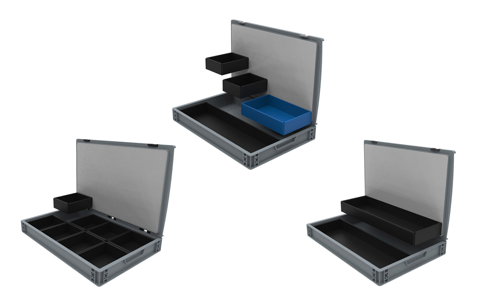 Vkládací boxy jsou optimálním řešením flexibilního rozdělování. Jednotlivé boxy je možné v euro boxu kombinovat a docílit tak vytvoření úložného prostoru na míru. Pěna ve víku euro boxu zaručí snadnou manipulaci, aniž by došlo k pomíchání obsahu.