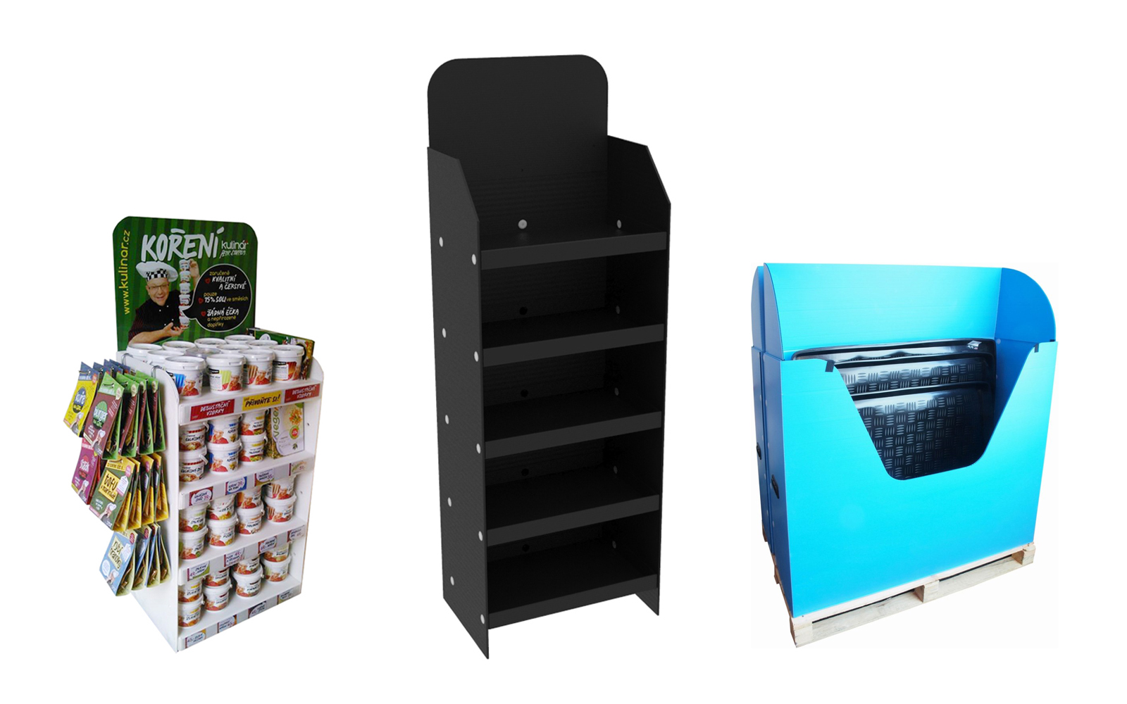 Jedná se o stojany, které se používají buďto k uložení větších/ objemnějších produktů nebo jako alternativa hlasovacích stojanů. Stojan je možné nechat celý libovolně potisknout, nebo doplnit samolepkou dle Vašeho přání. Krabicový stojan lze použít i jako přepravní obal. Skládá se snadno pomocí suchých zipů nebo plastových nýtů.