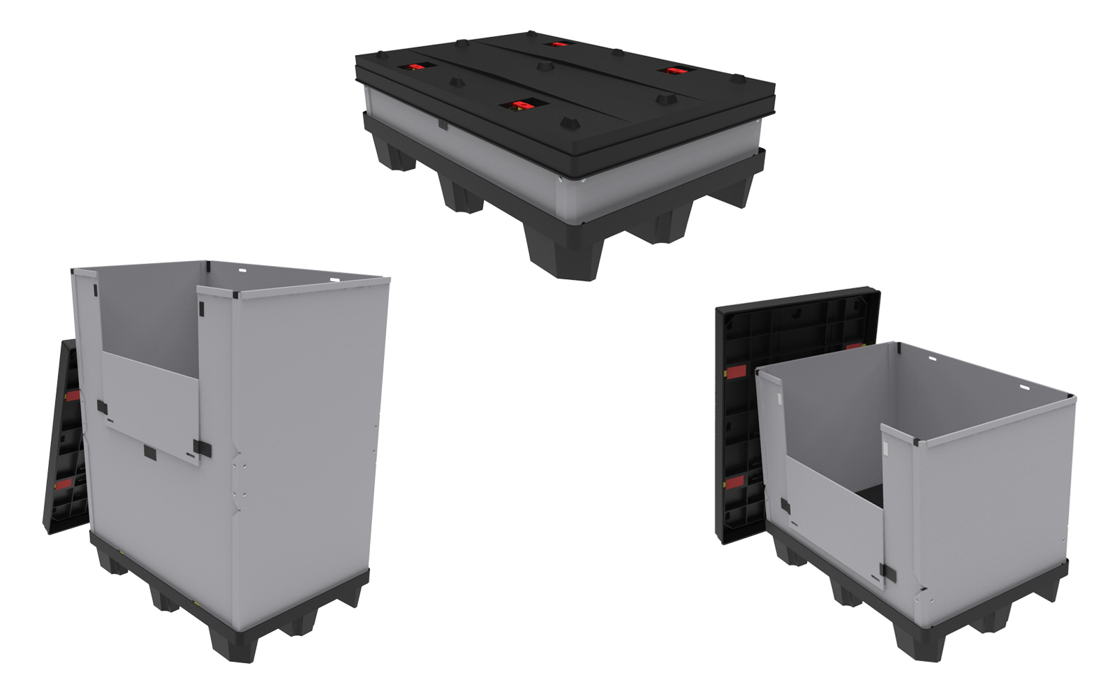 Tento typ kontejneru se vyznačuje velkým užitkovým objemem, který zaručuje maximální využití vnitřního objemu a zároveň minimální velikost boxu ve složeném stavu. Skládací paletový kontejner je ideální na manipulaci a skladování, zejména pak pro systém vratného balení. Možnost použití 2 a více pater textilních inzertů v jednom boxu.