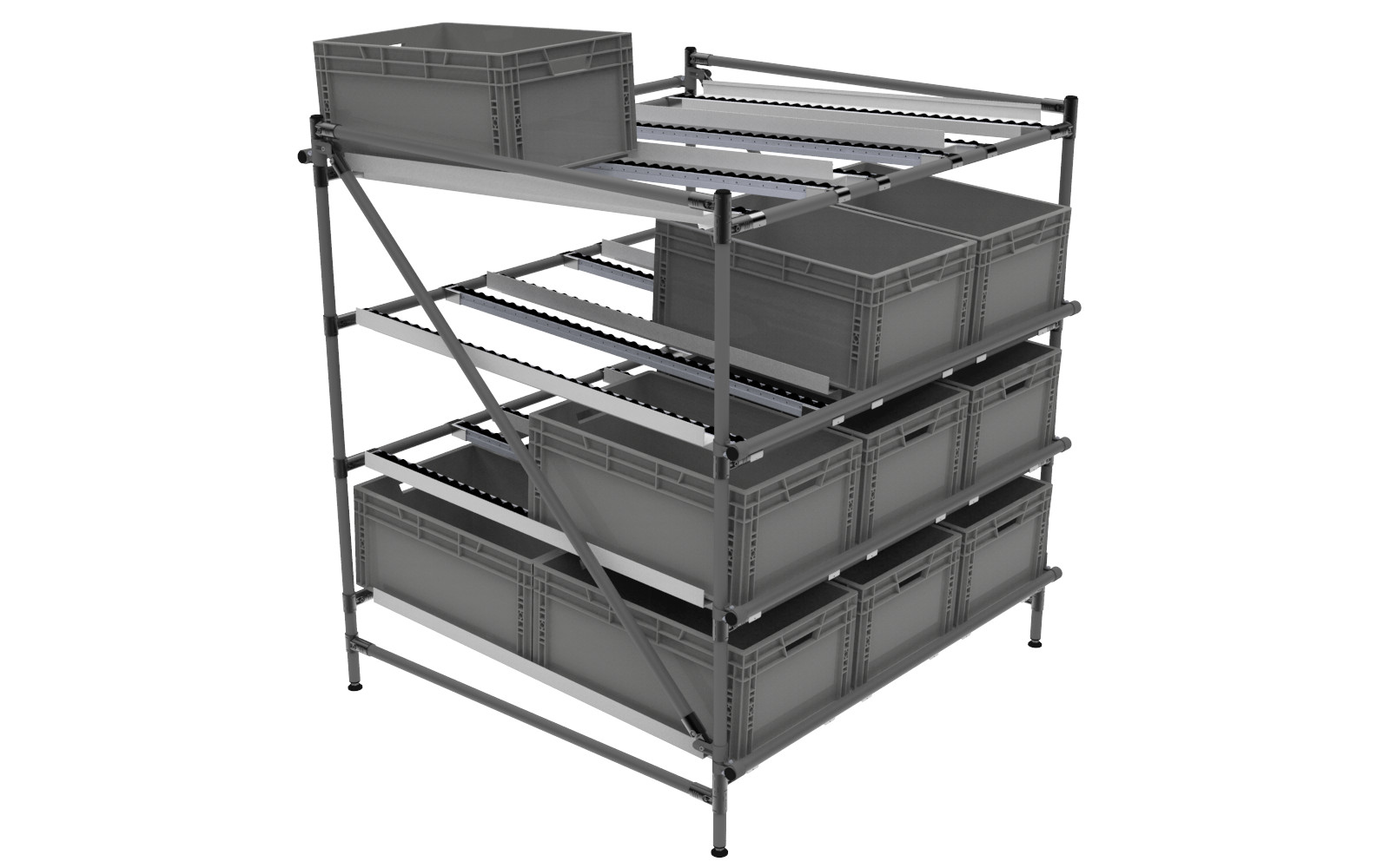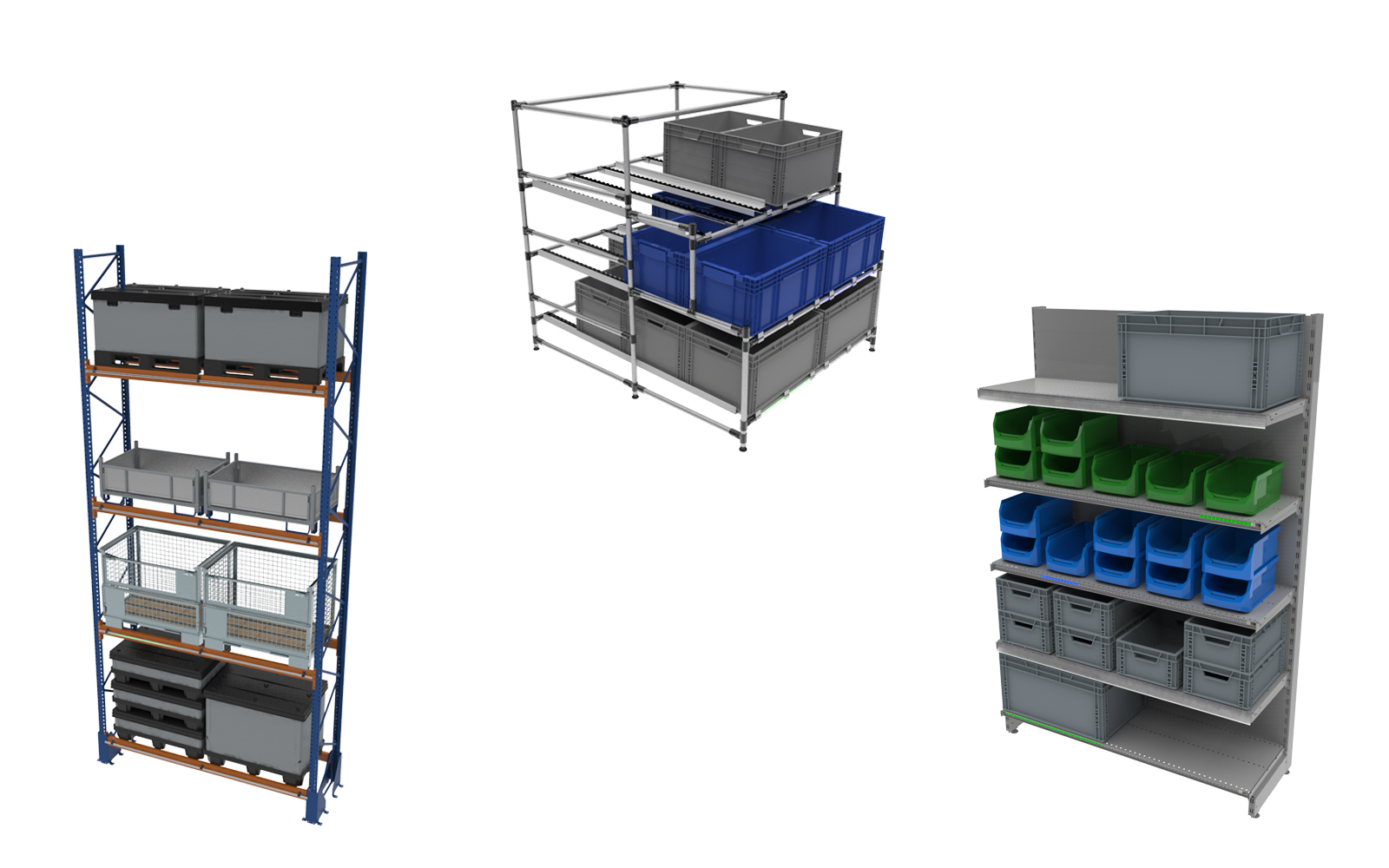 Světelnou navigací lze osazdit nejrůznější typy regálů, ať už se jedná o regály trubkové, spádové či regály paletové. Standardně nabídízíme vlastní řešení