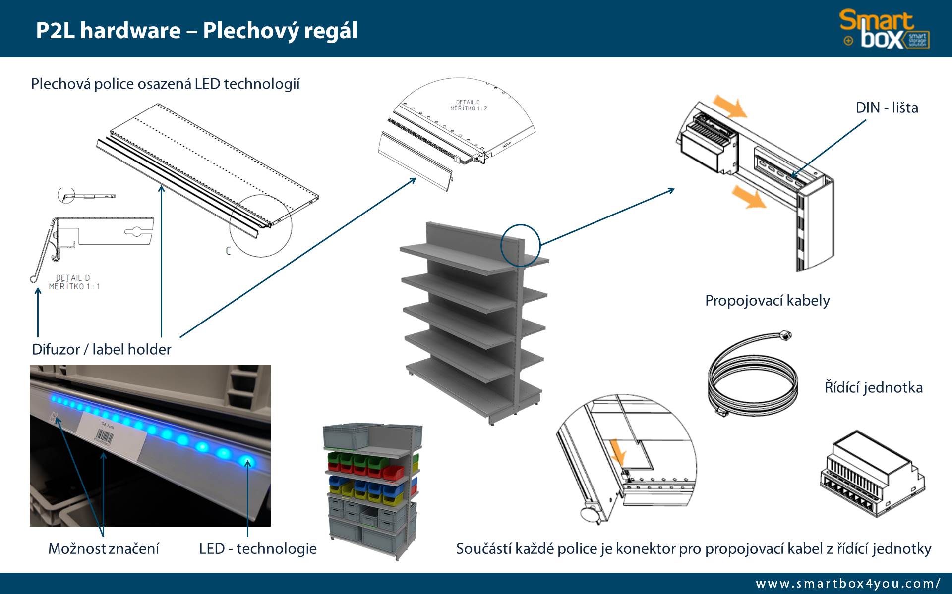 regálů, které můžeme dodat s prvky Pick to Light.